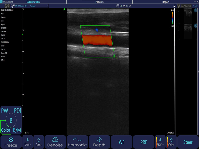 - Image Adjust: BGain, TGC, DYN, Focus, Depth, Harmonic, Denoise, Color Gain, Steer, PRF