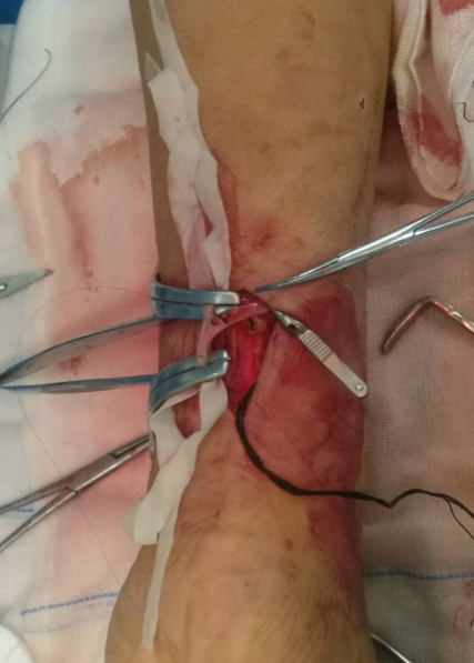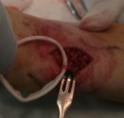 测量尺动脉直径(这里尺动脉有一个迂曲,术中有一点儿麻烦)