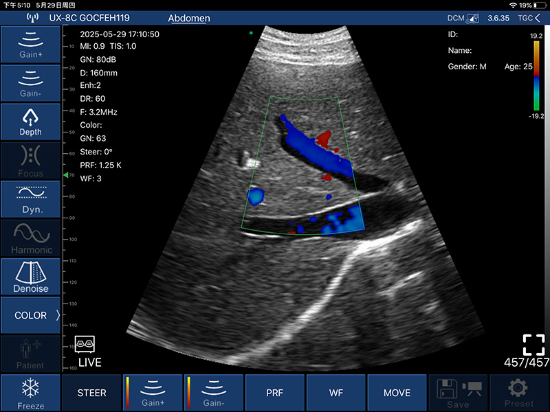 - 频率: 凸阵3.5/5.0MHz , 线阵7.5/10MHz