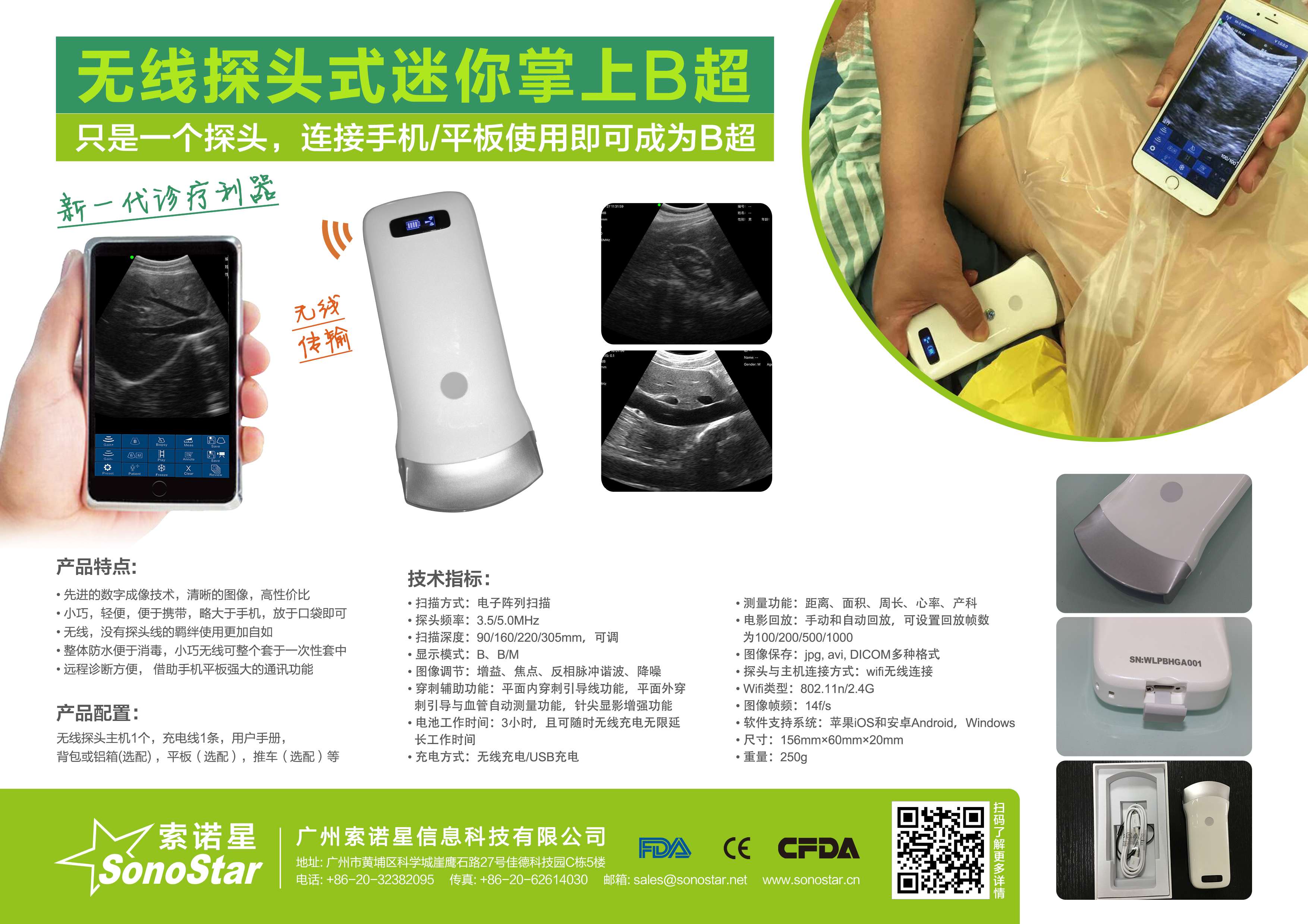 • 探头与主机连接方式:wifi无线连接