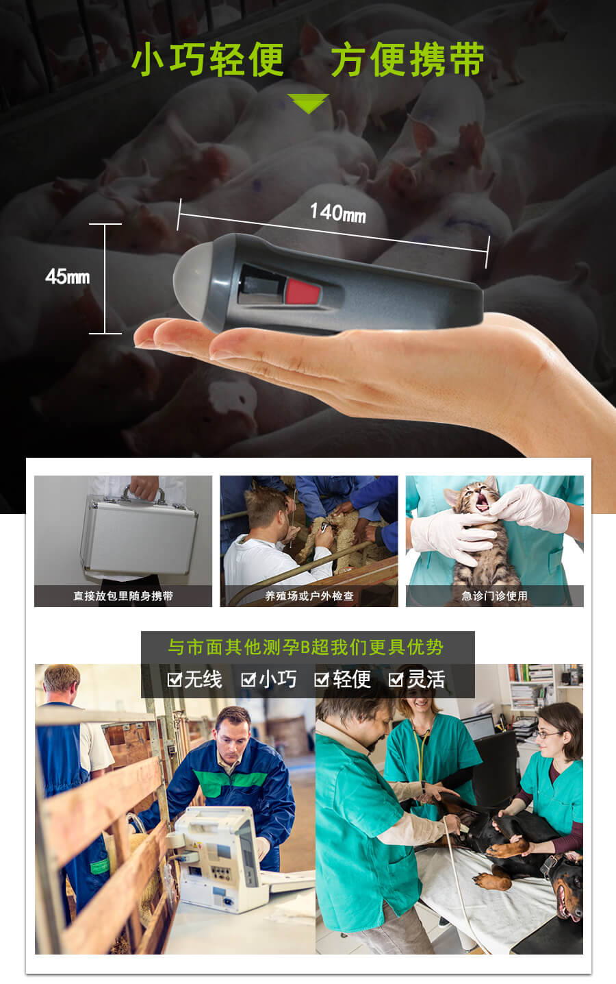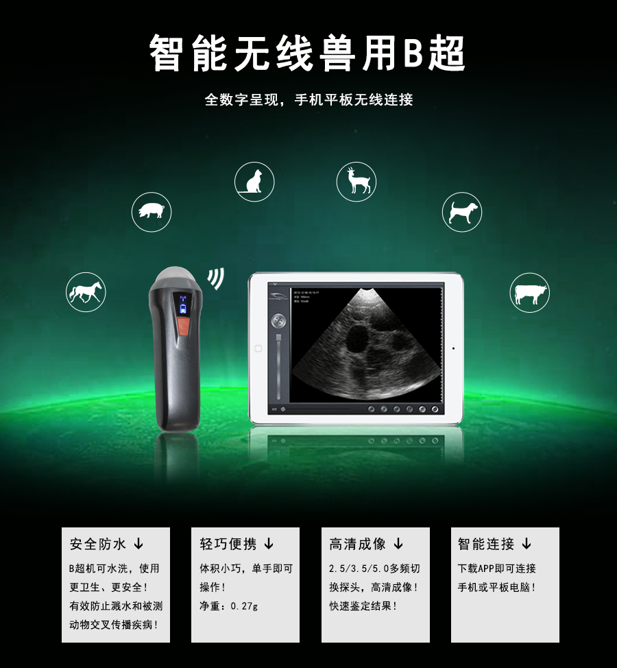 利用直观的B超影像进行测孕测膘,具有操作简便、测定迅速、精确且不伤害猪体的优点。