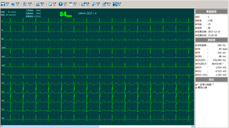 - 操作简便(快捷键仅3步就可完成一份心电图检查:F1采集、F2冻结、F3打印)