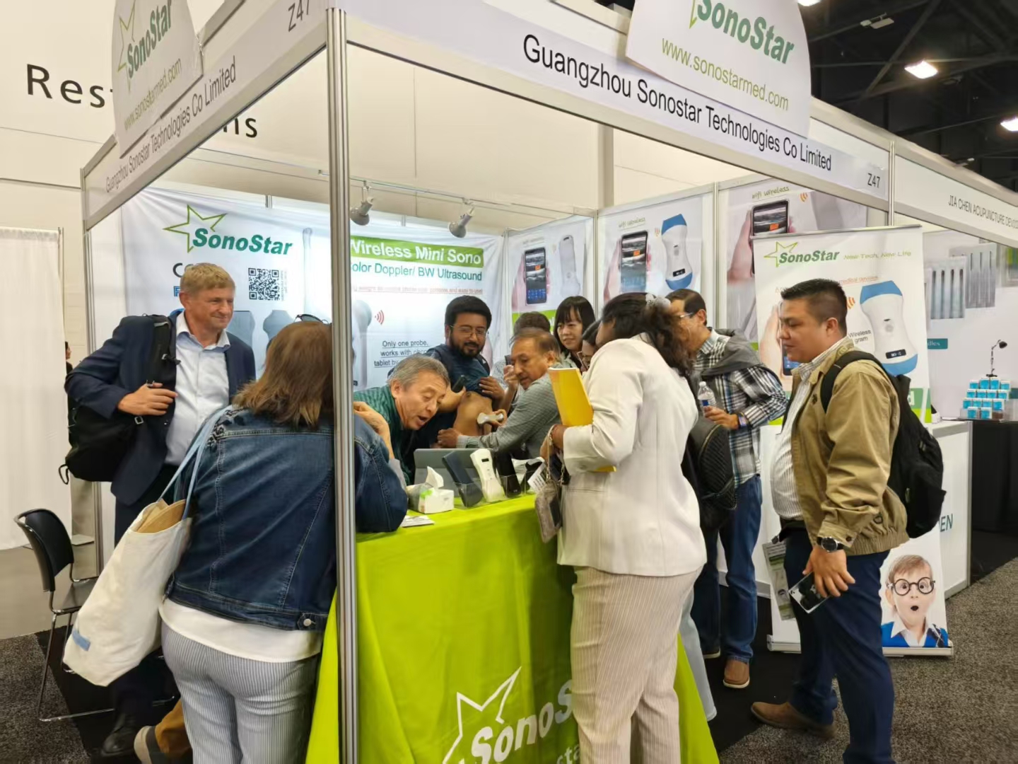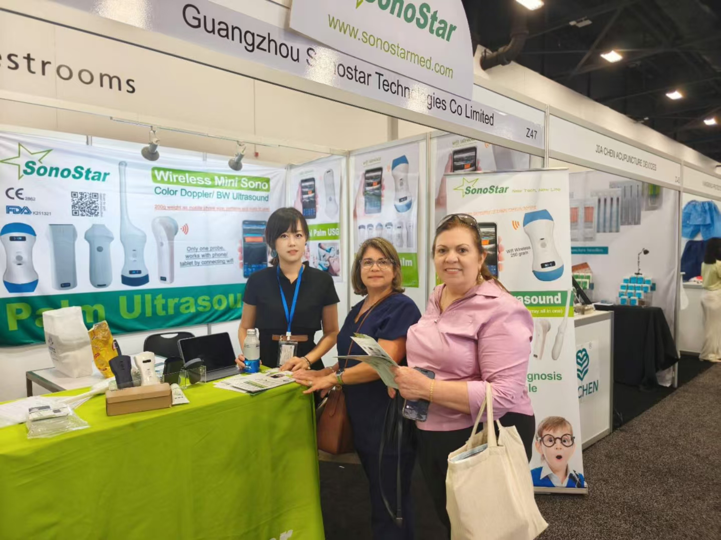 美国FIME医疗展,索诺星SonoStar两个展位都人流爆满,参展同事都忙得不可开交,再次收割了大批客户和卖出了二十多台样机