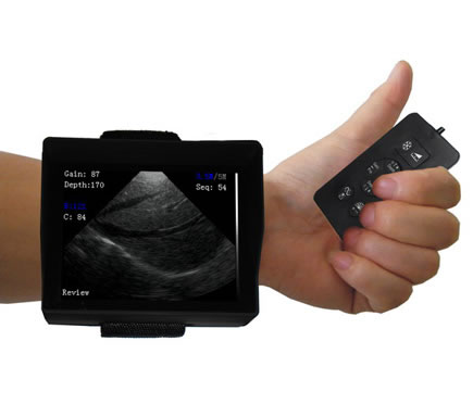 我司最新推出的V2型腕式B超,主机重量仅140克,看成目前全世界最轻的B超。