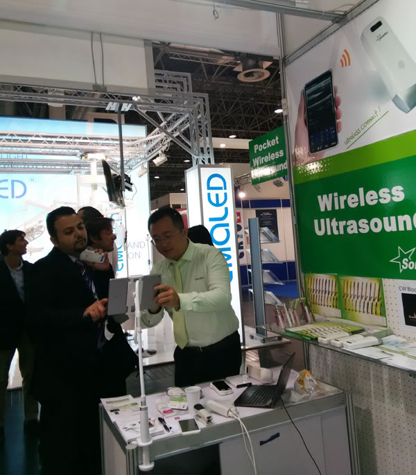 无线探头再次成为展会热点,新版本高清的图像获得客户高度认可。眼超、彩超、超声心电电脑一体机、CW血流分析探头等产品也吸引了众多客户。