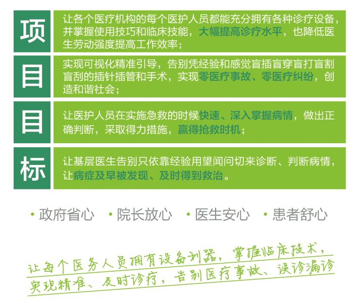 欢迎各地方卫生部门、各医疗机构联系洽谈合作推动地区内、机构内的医疗可视化、精准化,我们将为您们设计最佳方案实现用最低的投入获得最大的设备配套效果,也欢迎广大专家、领导一起参与推动工作成为精准普惠医疗工程的顾问(可获得低价购得专家推广样机的机会哦)。更多详情请见